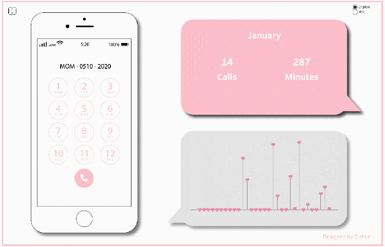 I created this data viz on Monther’s Day last year. Recently, I updated it with all the calls in 2020 between my mom and me.