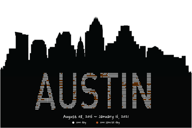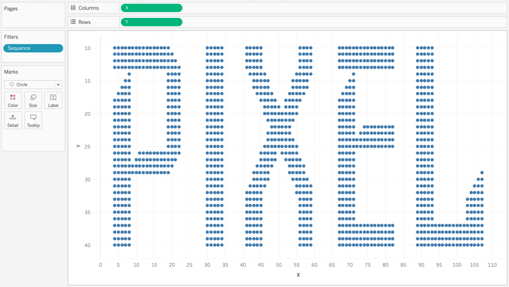 Below is what I end up building for the viz. In this post, I am going to write about creating the X & Y for the AUSTIN and any other words or characters you’d like to visualize.