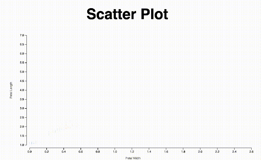 One thing cool about D3 is to add animations to the chart. Today, let’s add some animation to the dots. The logic is simple, we set a start status for the dot and an end status. In between these two statuses, we call “.transition().duration()”. Inside duration, we can set the duration in which the animation will finish. The unit is ms, 1000 will equal 1 second.