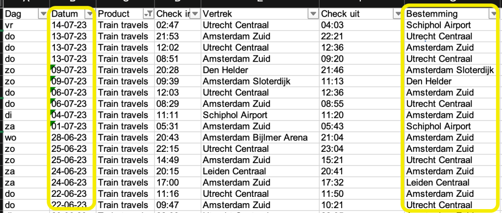 The Raw Data I have is my check-in and check-out itinerary. I only need two columns to calculate how many times I have been to a city – Date and Arrival Station. The raw data only have the information for on which day I have been to the station.