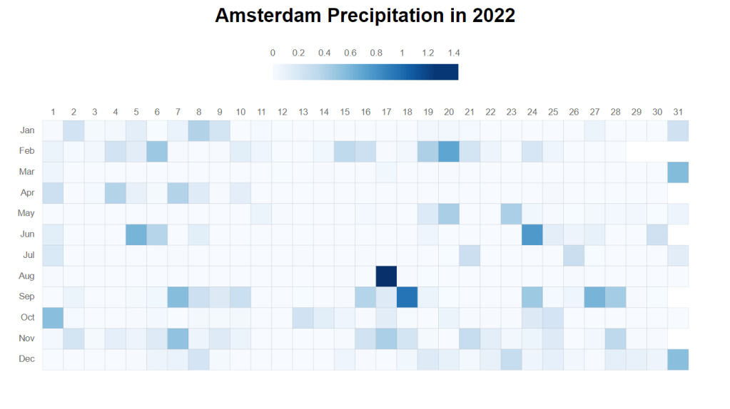 I was wondering how rainy 2022 was in Amsterdam. It was quite dry last year. I find a dataset here.